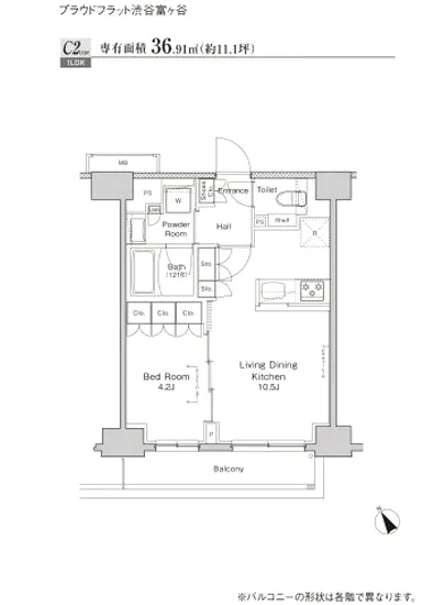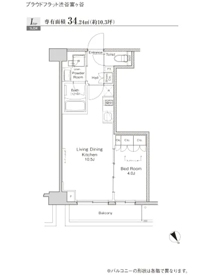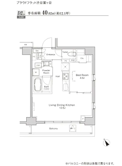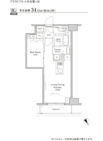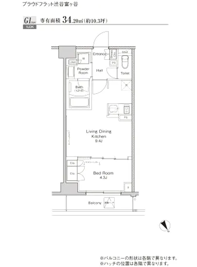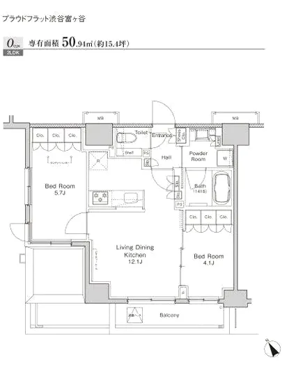 | 間取り | プラウドフラット渋谷富ヶ谷 | 所在区平均 | 分析結果 |