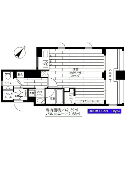 | フリーレント | なし | 平米数 | 42.69㎡ |