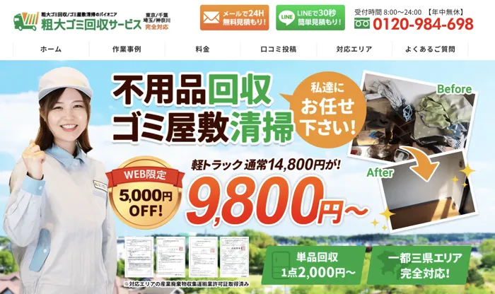 - 利用しやすさ:8:00〜24:00までの広範な受付時間、LINEや電話での無料見積もり、明確な料金体系などが特徴です。