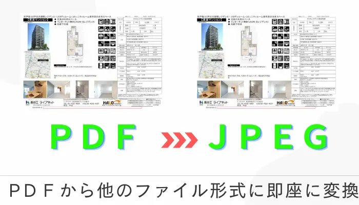 当サービスでは、図面データを貴社ご指定の形式に一括変換し、運用しやすい形でご納品します(例:JPEGに変換後、帯の追加や間取り図の切り出しが容易)。